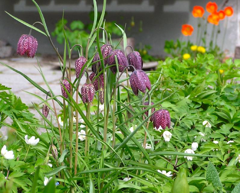 Kungsängslilja (Fritillaria meleagris L.) i rabatten